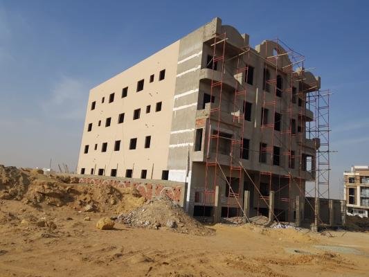 تم الانتهاء من اعمال المباني و المحارة والكهرباء وجاري الان اعمال السباكة ودهان الواجهات الخارجية وأعمال المداخل