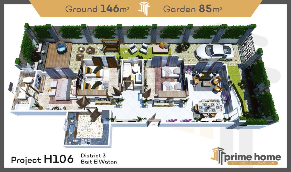 وبالقرب من أهم منطقة خدمات في بيت الوطن View Zone حيث الخدمات التجارية والترفيهية وعلى بعد خطوات من أرقى مجموعة كمبوند في التجمع الخامس مثل كمبوند iCITY Mountain View وكمبوند Palm Hills وقريب جدا من مجمع النوادي ( النادي الأهلي ونادي الشرطة ).